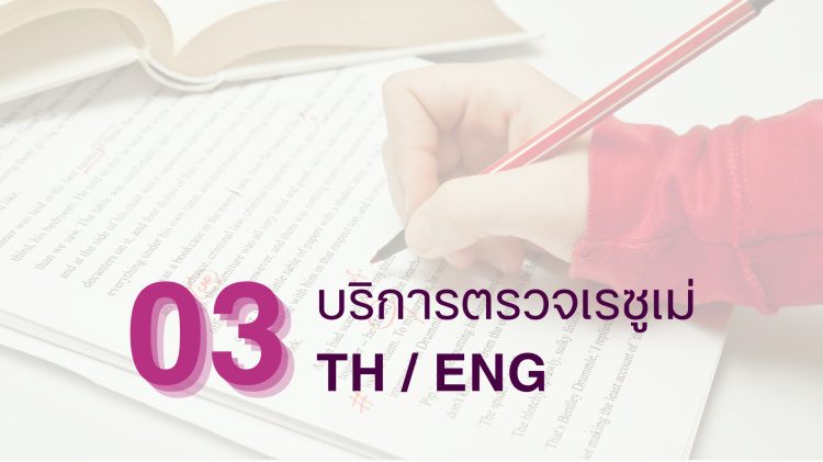 รับตรวจเรซูเม่ภาษาไทย และเรซูเม่ภาษาอังกฤษ (ด้านการใช้ภาษา / การใช้คำ / รูปแบบที่ถูกต้อง) พร้อมทั้งให้คำแนะนำหรือปรับปรุงแก้ไขให้เรซูเม่สมัครงานของคุณสมบูรณ์ที่สุดก่อนส่งสมัครงาน