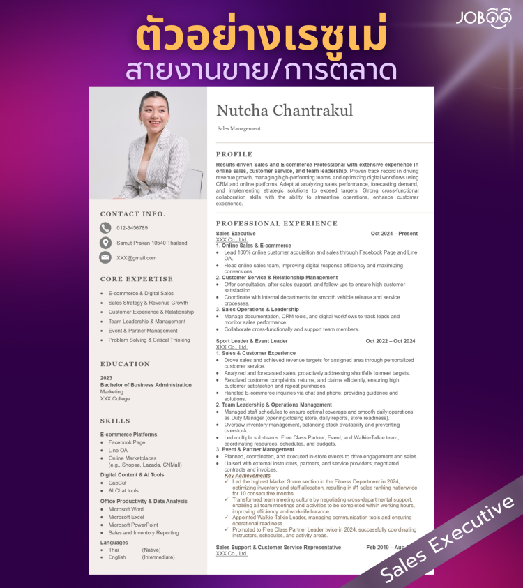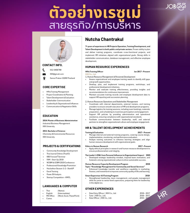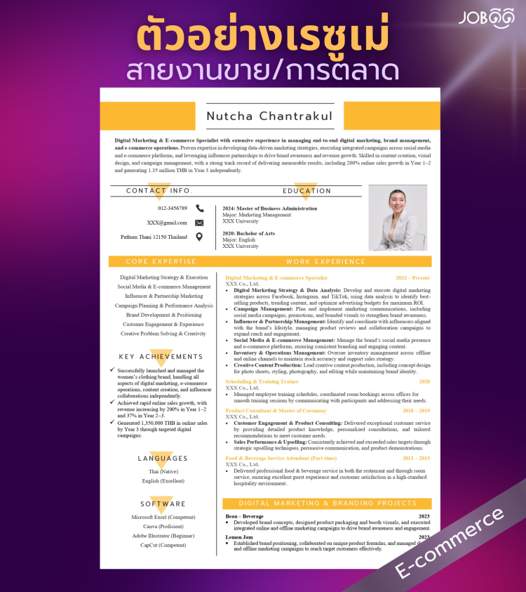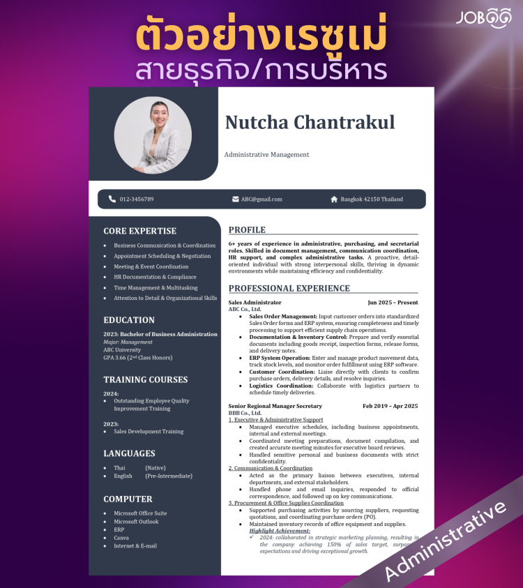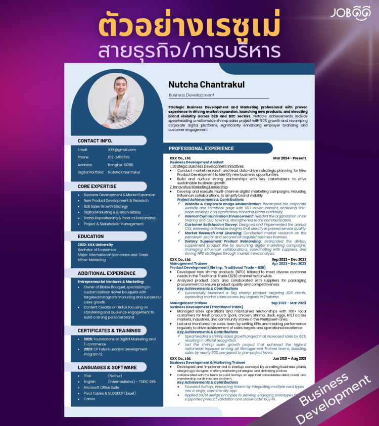 ตัวอย่างเรซูเม่สายธุรกิจ/การบริหาร