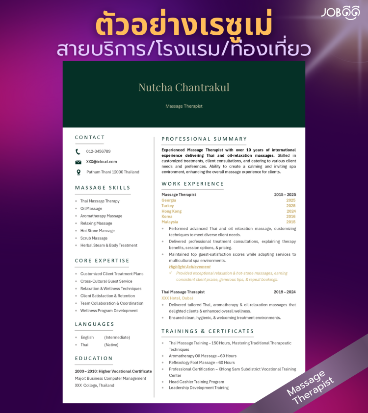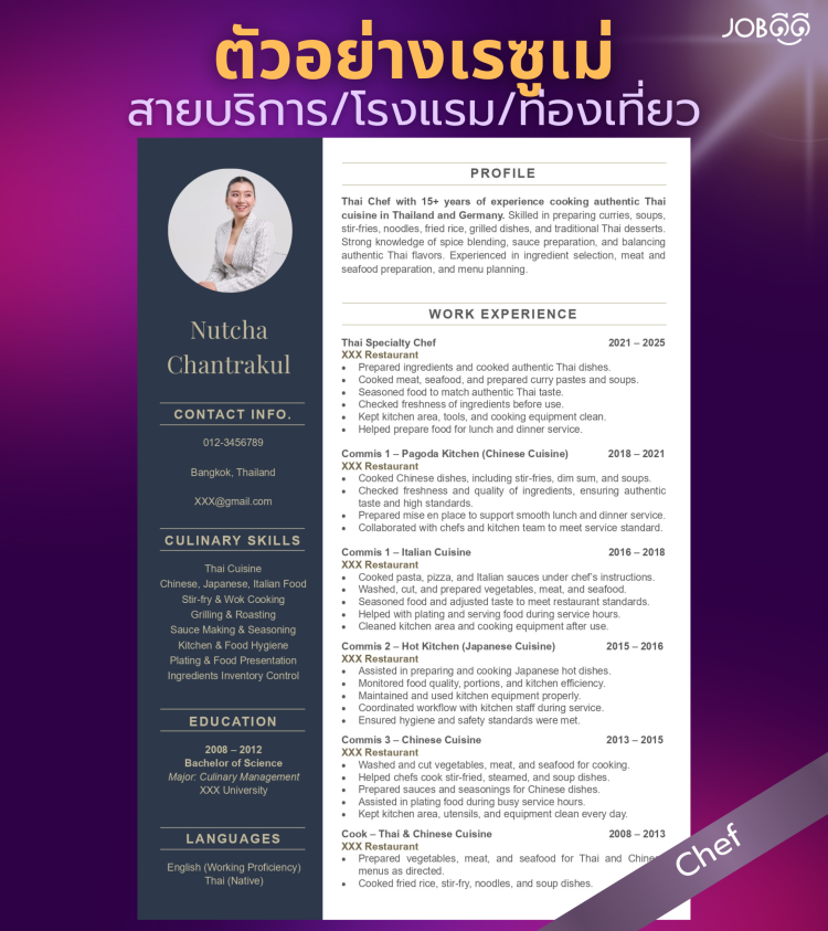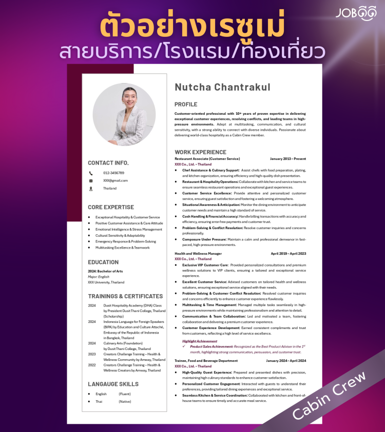 ตัวอย่างเรซูเม่สายบริการ/โรงแรม/ท่องเที่ยว