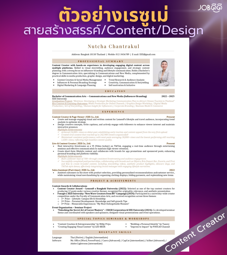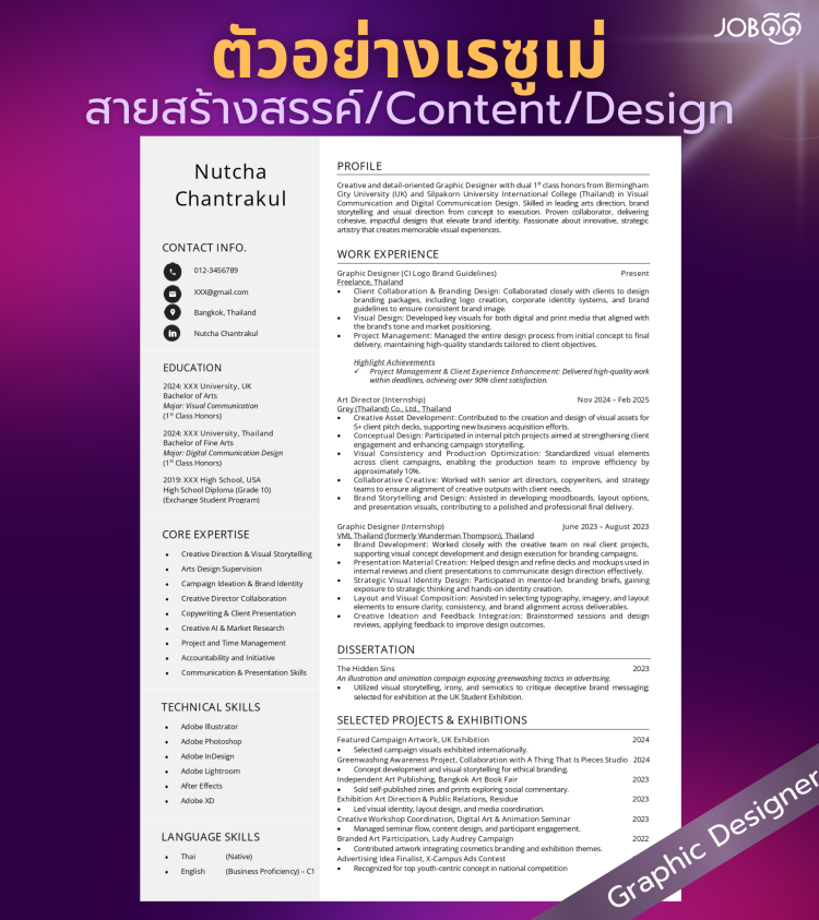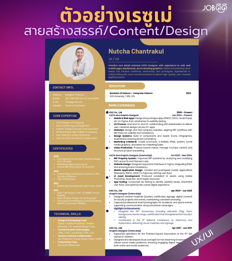 ตัวอย่างเรซูเม่สายสร้างสรรค์/Content/Design
