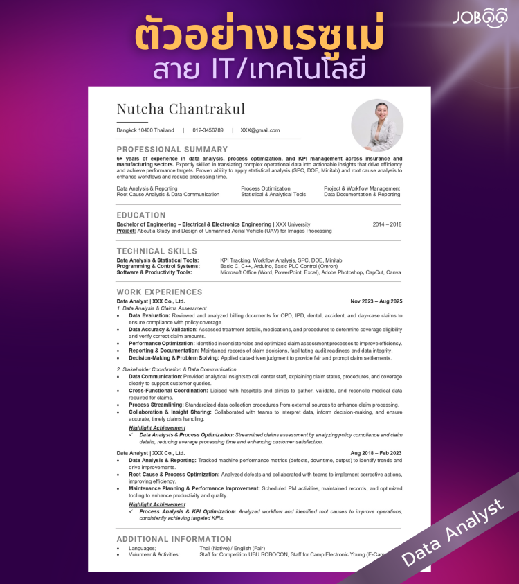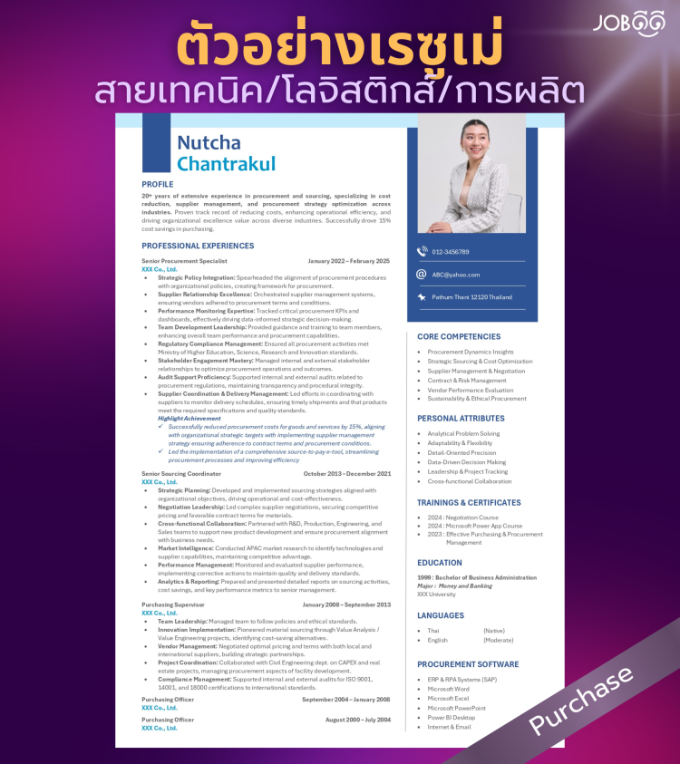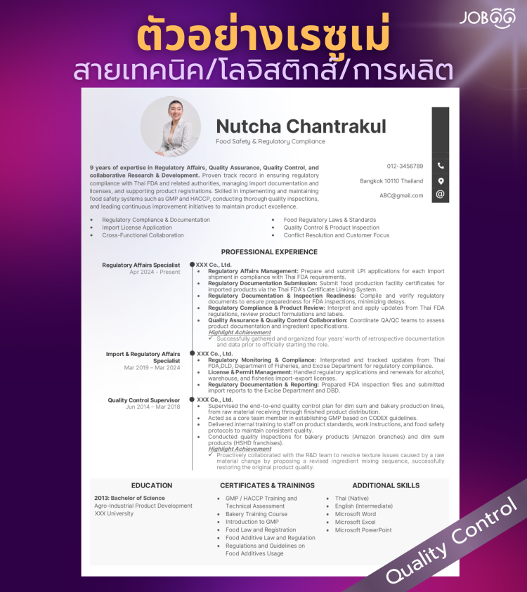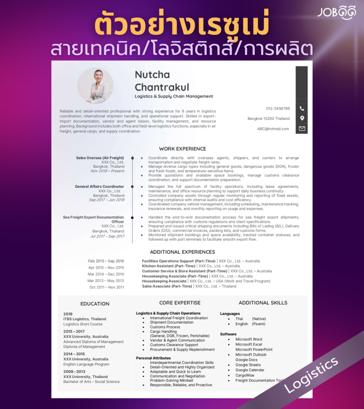 ตัวอย่างเรซูเม่สายเทคนิค/โลจิสติกส์/การผลิต