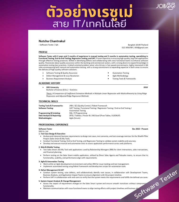 ตัวอย่างเรซูเม่สาย IT/เทคโนโลยี