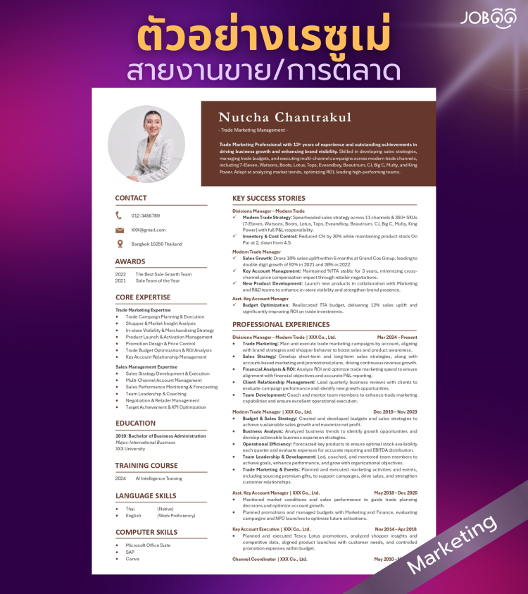 ตัวอย่างเรซูเม่สายงานขาย/การตลาด