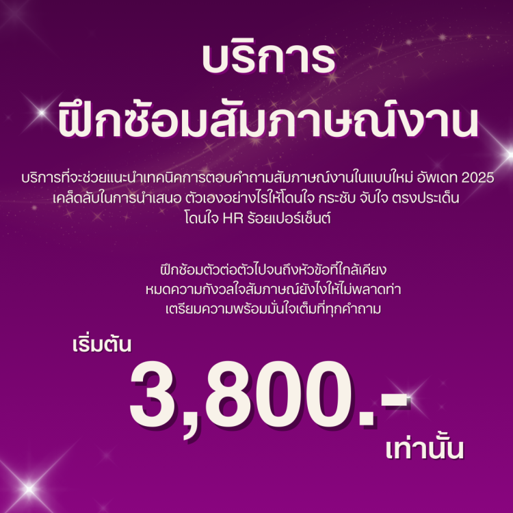 บริการฝึกซ้อมสัมภาษณ์งาน ช่วยเน้นเทคนิคการตอบคำถามสัมภาษณ์งานแบบใหม่ อัพเดท 2025ฝึกซ้อมตัวต่อตัวกับโค้ชพี่จ๊ะเอ๋อย่างใกล้ชิด